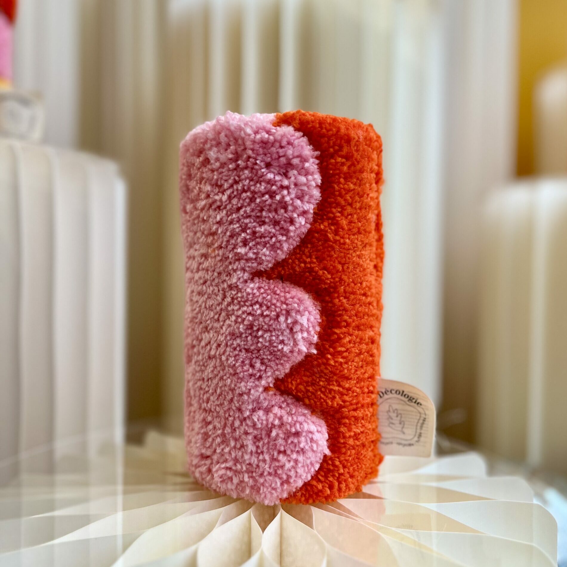 Vase bicolore en tufting réalisé à partir de bouteille en verre découpé.